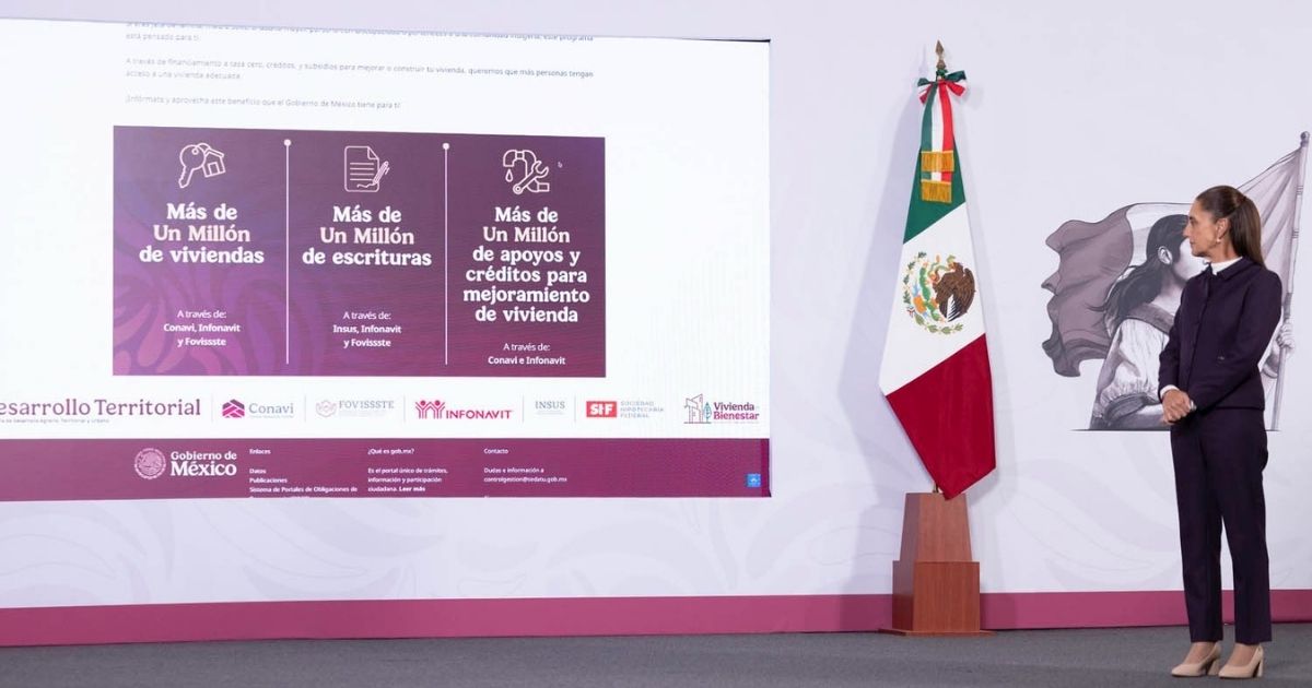 Las cifras cayeron como martillo: 393 mil viviendas ya suscritas, 420 mil apoyos otorgados, 270 mil documentos de certeza jurídica entregados y 4.8 millones de créditos impagables reestructurados. En Palacio Nacional, la vivienda dejó de ser maqueta para convertirse en block, losa y escritura.