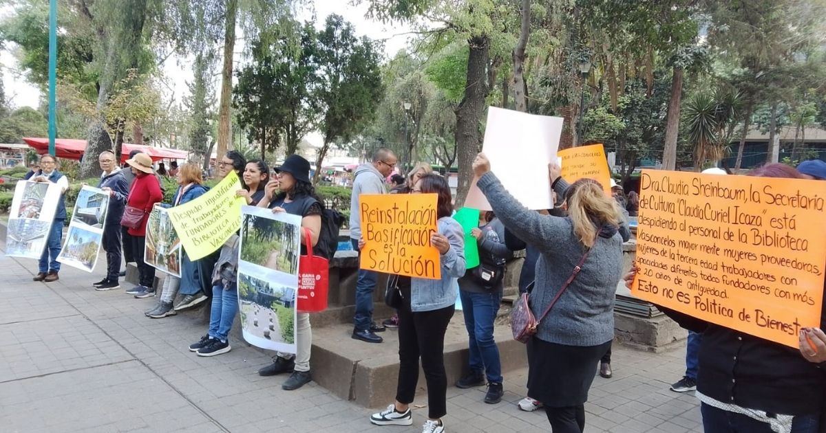 Ciudad de México.– Los 31 bibliotecarios despedidos de la Biblioteca Vasconcelos se manifestaron este martes a las afueras de la Dirección General de Bibliotecas, en la alcaldía Cuauhtémoc, donde una comisión de cinco trabajadores sostuvo una reunión con autoridades de la Secretaría de Cultura para exponer su situación laboral.