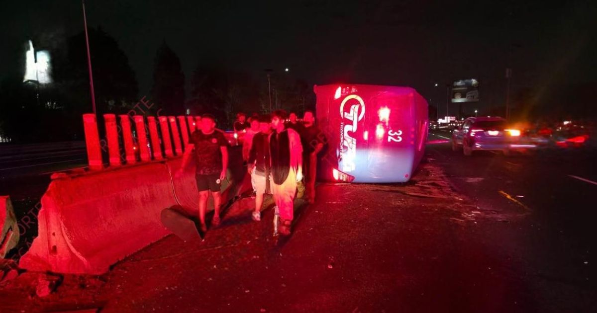 El rugido del metal arrastrándose sobre el pavimento despertó a vecinos y automovilistas en la carretera México-Pachuca. Un camión de pasajeros terminó volcado tras perder el control e impactarse brutalmente contra el muro divisorio, dejando una escena de sangre, vidrios rotos y fierros doblados que paralizó la vialidad durante más de cuatro horas.