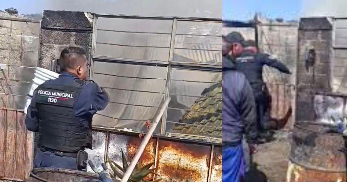 Resultaron heridos dos policías tras ingresar a una vivienda ubicada en Villa San Agustín Atlapulco, en el municipio de Chimalhuacán, que estaba en llamas