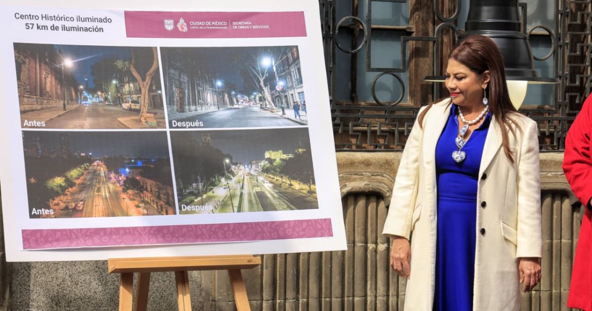 Ciudad de México.– Con 57 kilómetros de iluminación, 134 calles intervenidas, 7 mil nuevas luminarias, 15 edificios emblemáticos iluminados y más de 73 mil metros cuadrados de fachadas realzadas, la jefa de Gobierno Clara Brugada presentó el Programa de Iluminación Monumental del Centro Histórico, una de las acciones clave rumbo al Mundial de Futbol y parte de un plan permanente de recuperación urbana.
