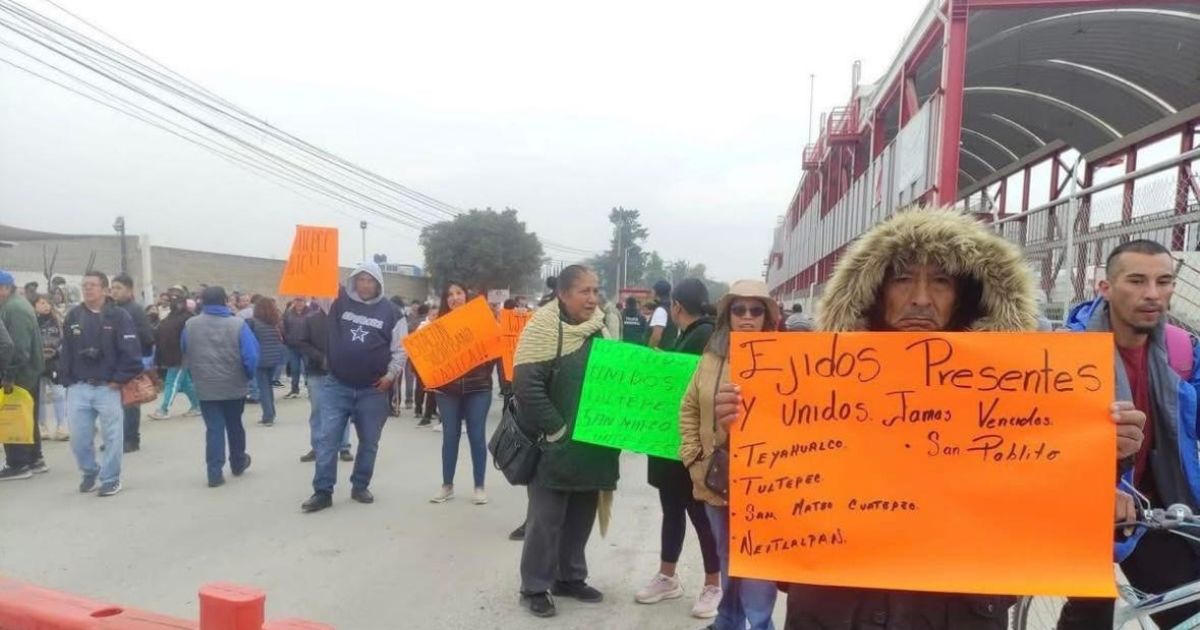La protesta reunió a habitantes de ejidos de Tultepec, Nextlalpan, Tonanitla y Tultitlán, quienes acusan el incumplimiento reiterado de acuerdos relacionados con la construcción del Tren Suburbano que conectará Buenavista con el AIFA.