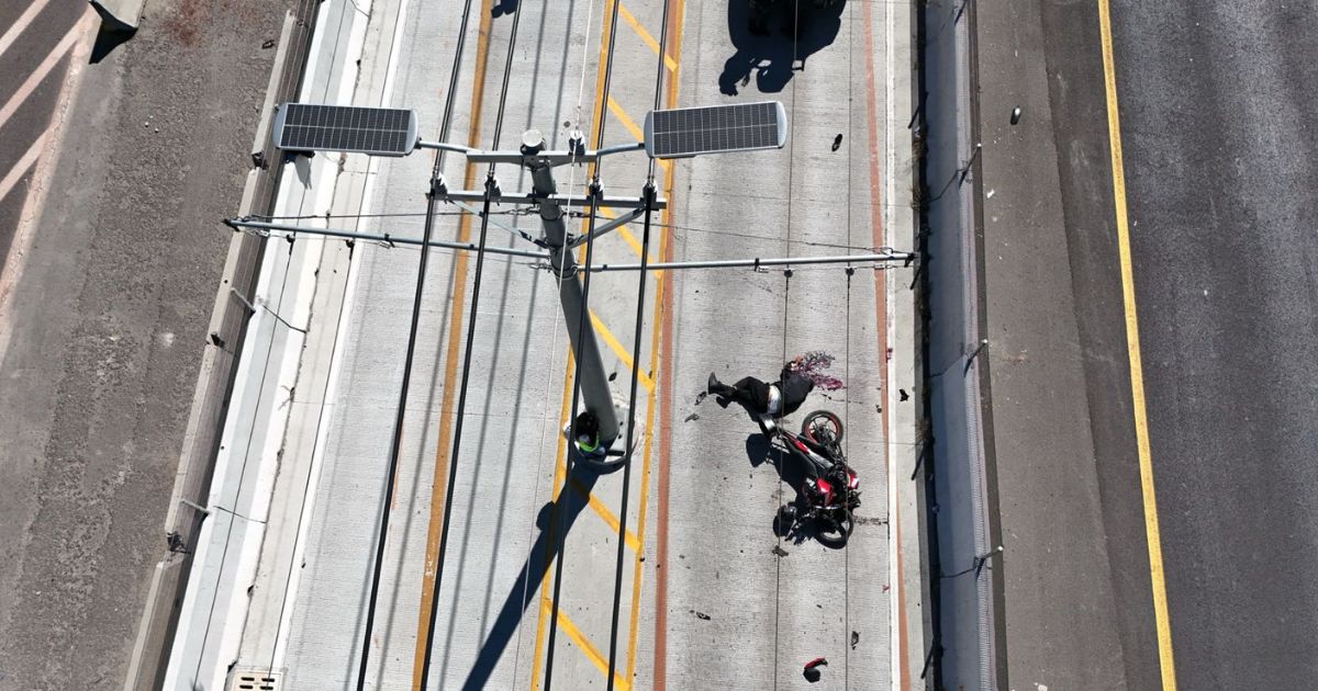 VALLE DE CHALCO, EDOMEX. – En forma espantosa, un motociclista perdió la vida tras chocar contra un muro de contención y caer en los carriles confinados del Trolebús, en la colonia San Isidro, municipio de Valle de Chalco.