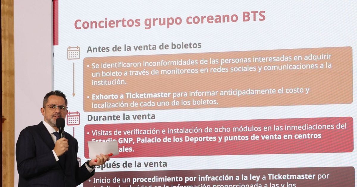 Ciudad de México.- Los conciertos de BTS en México no sólo desataron la euforia de las ARMY, también exhibieron uno de los negocios más voraces del entretenimiento: la reventa de boletos. Ante los abusos, la Procuraduría Federal del Consumidor (Profeco) ya puso el pie en el acelerador y alista sanciones ejemplares contra boleteras y plataformas que hicieron su agosto con precios inflados.