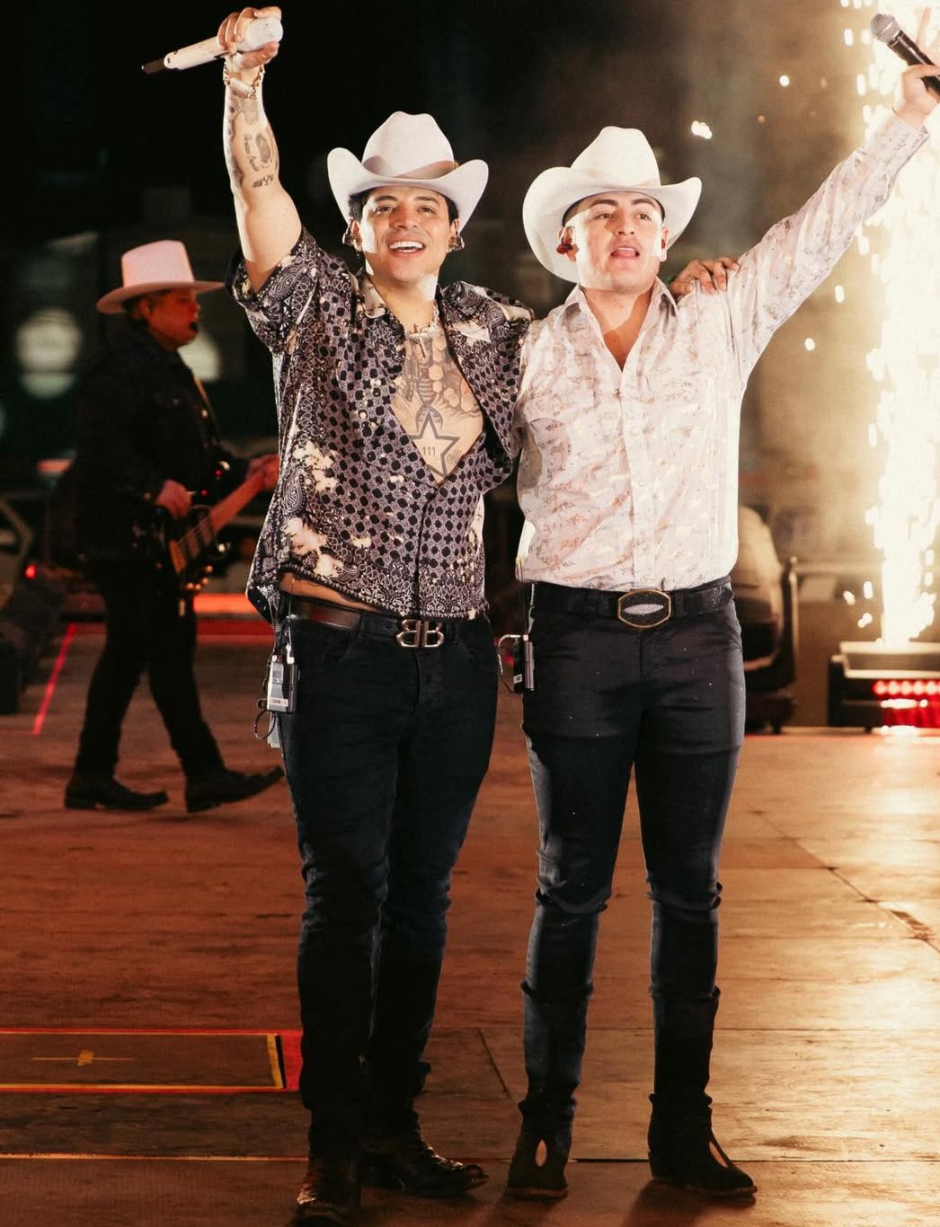 Ciudad de México.– Tremendo fiestón fue el que organizó el cantante Moy Bobadilla para presentar su álbum “Arriba la moyombiza 2” en el Lienzo Charro de Constituyentes de la CDMX. Lo mejor es que el cantante jalisciense tuvo un invitado y padrino de lujo, el líder de grupo Firme, Eduin Caz, quien estuvo apoyando a su ahijado en esta fiesta muy mexicana.