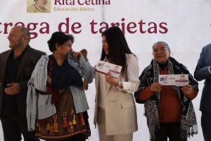 de 4 mil 200 tarjetas correspondientes a la Beca Universal de Educación Básica “Rita Cetina”, dirigida a estudiantes de nivel básico, con la cual cada beneficiario recibirá un apoyo económico de 1,900 pesos de manera bimestral. En esta ocasión, las tarjetas incluyen un pago retroactivo de 5,700 pesos, correspondiente a los bimestres anteriores, garantizando que los jóvenes reciban el respaldo completo desde su ingreso al programa.
