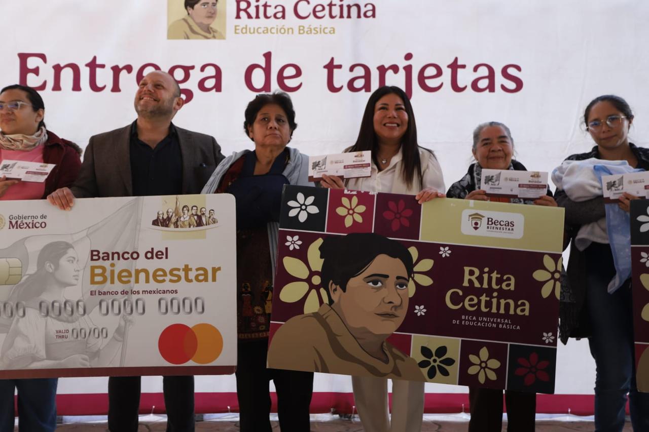 de 4 mil 200 tarjetas correspondientes a la Beca Universal de Educación Básica “Rita Cetina”, dirigida a estudiantes de nivel básico, con la cual cada beneficiario recibirá un apoyo económico de 1,900 pesos de manera bimestral. En esta ocasión, las tarjetas incluyen un pago retroactivo de 5,700 pesos, correspondiente a los bimestres anteriores, garantizando que los jóvenes reciban el respaldo completo desde su ingreso al programa.