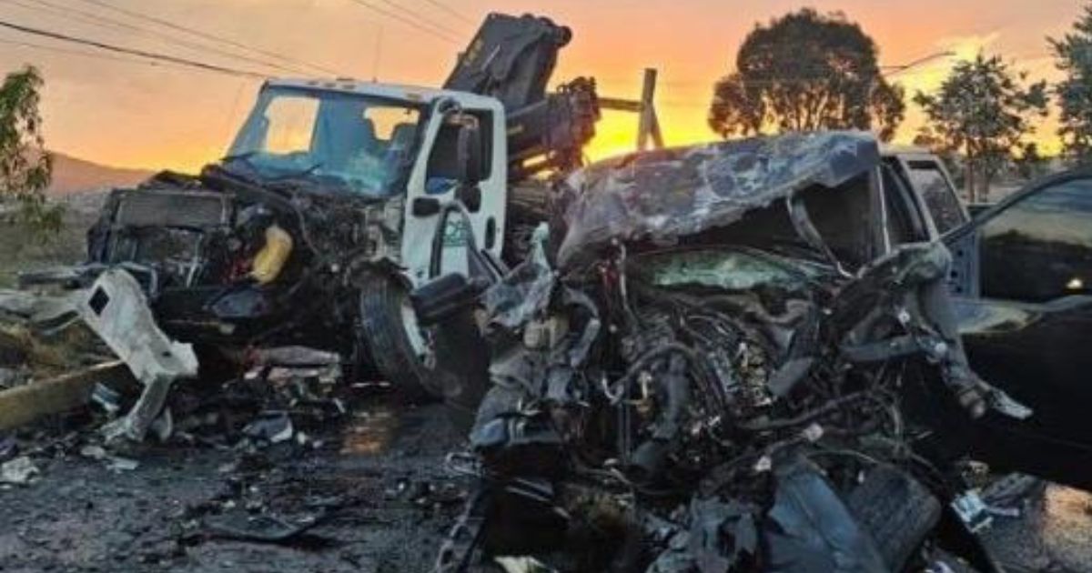 Un brutal encontronazo entre una camioneta particular y una grúa de la CFE en la carretera Atlacomulco–Morelia, a la altura de El Toril, en San Felipe del Progreso