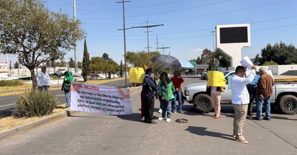 Trabajadores sindicalizados del Sistema Nacional de Salud se manifestaron frente a las Torres Bicentenario, en Toluca, para exigir a la Secretaría de Salud la apertura inmediata de mesas de diálogo.