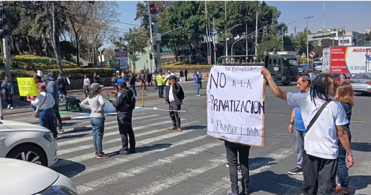 Ciudad de México.–Vecinos de la alcaldía Miguel Hidalgo bloquearon la circulación en la esquina de avenida Parque Lira y Eje Vial 3 Sur para exigir a las autoridades encabezadas por el alcalde Mauricio Tabe, la entrega de los documentos que acrediten que el uso del Parque Lira se realiza conforme a la ley.