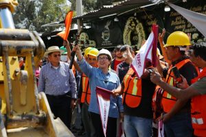 La alcaldesa Azucena Cisneros Coss dio el banderazo a la construcción del colector 12, con longitud de 1.5 kilómetros, que beneficiará a más de 45 mil vecinos de cinco colonias de la zona de Multiplaza Aragón, que desde hace más de 20 años es afectada por inundaciones, ante la indiferencia de administraciones pasadas.