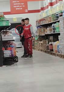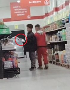 En el metraje se puede observar como los adolescentes, que tendrán quizá unos 10 o 12 años, se posicionan uno junto al otro y de forma poco discreta, introducen mercancía entre su ropa, para de manera despistada abandonar el lugar sin que sean revisados o detenidos.