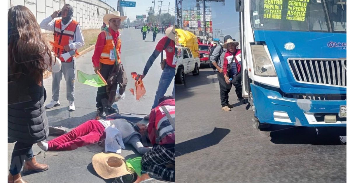 Entre rezos y cánticos, el contingente de peregrinos avanzaba con paso cansado sobre Paseo Tollocan cuando un estruendo seco cortó el aire: un autobús de pasajeros arrolló a una joven devota en el cruce con avenida Tecnológico.