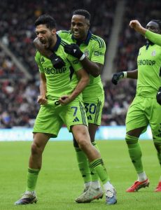 Raúl Jiménez, a sus 34 años (en mayo cumple 35), con su doblete en la victoria contra el Sunderland, que lo coloca ya en el top 5 de máximos goleadores del Fulham en la Premier League de Inglaterra.
