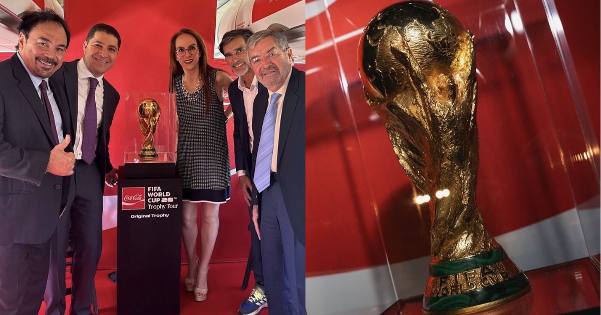 El trofeo regresó por tercera vez a México, como sede mundialista, tras 1970 y 1986; arribó 104 días antes del inicio del torneo que organizan México, Estados Unidos y Canadá
