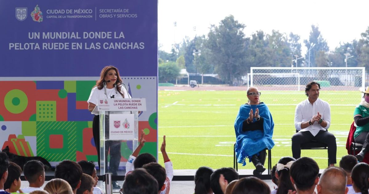 Ciudad de México.- El Mundial de Futbol 2026 aceleró la obra pública de la Ciudad de México como son la construcción de 500 canchas de futbol en toda la urbe, la remo-delación del tren ligero, así como el remozamiento de dos embarcaderos en Xochimilco, el Nativitas y Cuemanco, informó la Jefa de Gobierno, Clara Brugada, quien destacó que dichos trabajos ahí permanecerán, y serán en beneficio de todas y todos los capitalinos.
