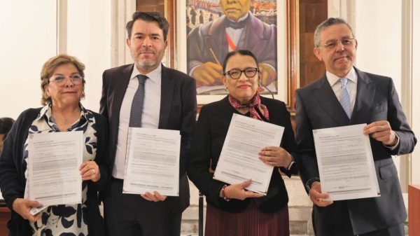 Por su parte, la secretaria de Gobernación, Rosa Icela Rodríguez, informó que, como parte del eje de atención a las causas, se realizaron 413 mesas de paz estatales, 2,456 regionales y 228 jornadas por la paz, con participación de más de 69 mil personas. Mediante el programa de desarme voluntario, se canjearon 1,219 armas de fuego en 20 municipios. Asimismo, se anunció la construcción de 20 nuevos planteles del Bachillerato Nacional y la llegada de universidades y centros comunitarios para fortalecer el tejido social.