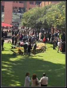 El hecho provocó una fuerte movilización de servicios de emergencia, ya que de acuerdo con los reportes, fueron alrededor de 100 personas, todos alumnos vestidos con togas y birretes, los que se encontraban agrupadas para una fotografía, cuando la parte trasera de las gradas prefabricadas se vino abajo.