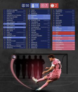 De tal manera que el astro argentino está a 67 goles de alcanzar a Cristiano Ronaldo como el máximo anotador en la historia del futbol y actualmente en el segundo puesto de la tabla de artilleros históricos.