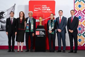 El trofeo llegó a México gracias al FIFA World Cup Trophy Tour. La gira consiste en visitar 10 ciudades del país en 26 días, incluidas las sedes mundialistas: Ciudad de México, Guadalajara y Monterrey.