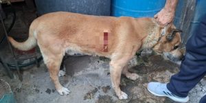 A una hembra de la raza pitbull color café, la cual recibió heridas en la cabeza y en la extremidad anterior izquierda, y a un perrito mestizo del mismo color lesionado en el lomo.