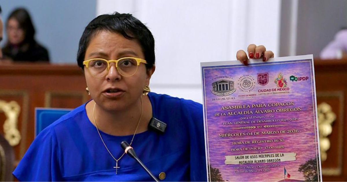 La legisladora por Álvaro Obregón denunció que diputados morenistas realizaron está asamblea el pasado 4 de marzo en el Salón de Usos Múltiples de esta alcaldía sin informar, ni invitar a diputados de oposición, pese a que el evento utilizó el logotipo oficial del Congreso.