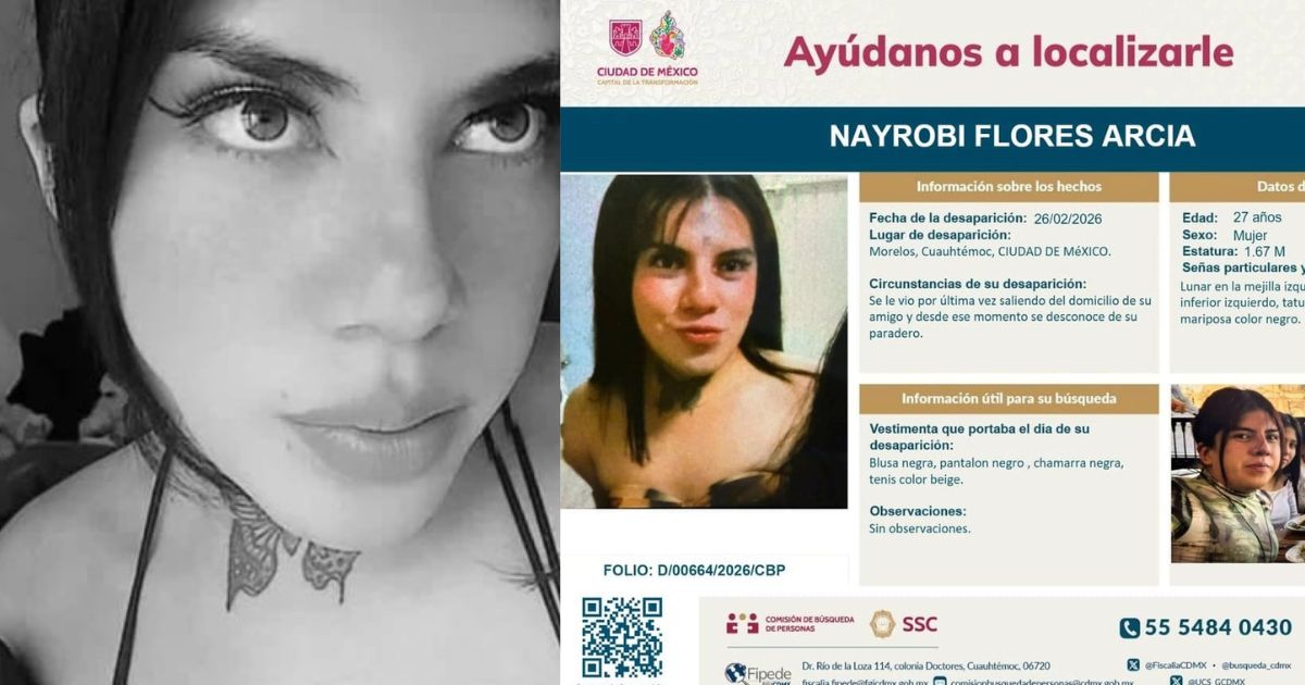 Cabe recordar que Nayrobi era buscada desde el pasado 26 de febrero, cuando salió de casa de un amigo en la colonia Morelos y ya no se supo más de ella.