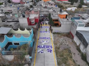 Ecatepec, Méx., a 13 de marzo de 2026. Durante este mes, el gobierno de Ecatepec incluirá en calles pavimentadas leyendas alusivas a la igualdad de género, en conmemoración del Día Internacional de la Mujer, que se celebra cada 8 de marzo.