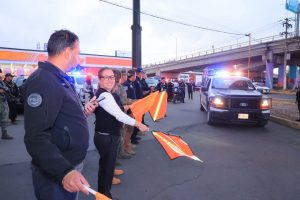 La presidenta municipal Azucena Cisneros Coss; el comisario de Seguridad Ciudadana y Tránsito Municipal, Luis Alberto Taylor González; Fernanda Soria Flores, Secretaria Técnica de la Mesa de Paz en Ecatepec y Luis Arturo Vázquez Valtierra, Fiscal De Robo de Vehículos Ecatepec, dieron el banderazo de salida al dispositivo.