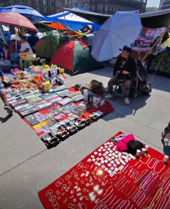 Algunos son comerciantes traídos por los propios maestros disidentes, pero otros son comerciantes de las inmediaciones quienes vieron la oportunidad de expandirse a la plancha durante estos días en los que los manifestantes van a estar en el Zócalo.