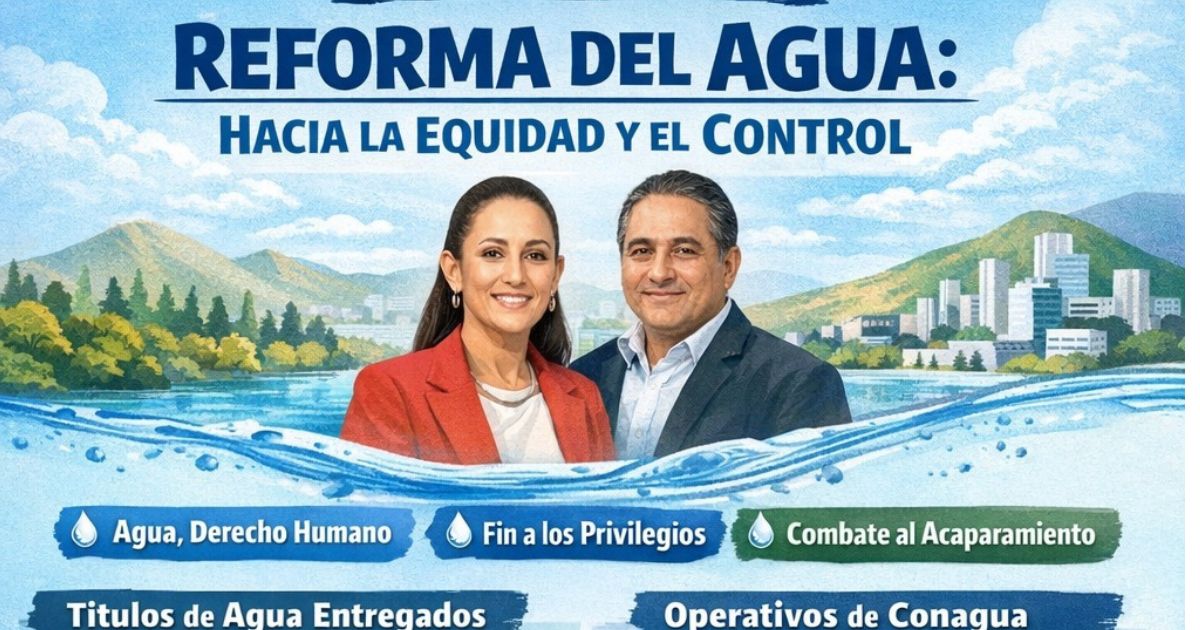 Acompañada por Efraín Morales López, titular de la Conagua, la mandataria subrayó que la reforma retoma el principio juarista de igualdad ante la ley, al prohibir la transmisión de derechos entre particulares, frenar la mercantilización y reconocer el agua como un derecho humano.