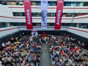 “Un espacio vivo para sus reuniones, para sus capacitaciones, para el arte, para la convivencia, para el diálogo. Y esta plaza central es a partir de hoy legítimamente suya, trabajadores y trabajadoras. Pero un espacio de esta magnitud, con este propósito de encuentro y de memoria, no podía llevar cualquier nombre. Debía llevar el nombre de alguien que hubiera dedicado su vida entera a escuchar, a congregar voces, a documentar historias que ha vivido nuestro país.