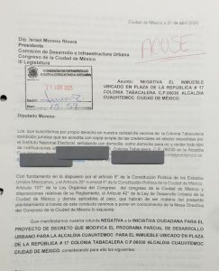 La solicitud ciudadana, fechada el 21 de abril de 2025, señala una “rotunda negativa” a la iniciativa de decreto para modificar el Programa Parcial de Desarrollo Urbano en la alcaldía Cuauhtémoc, al considerar que el impacto sería perjudicial para la zona.
