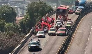 En el primer punto, los manifestantes interrumpieron el tránsito con dirección a Nezahualcóyotl, afectando una de las rutas más utilizadas por trabajadores y transportistas. De manera simultánea, otro contingente tomó la caseta de San Marcos sobre la autopista México-Puebla, cerrando por completo la circulación en un corredor clave para el traslado de mercancías y pasajeros hacia el suroriente del país.