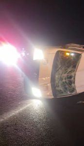 El impacto fue tan violento, tan salvaje que la combi quedó volcada sobre su costado izquierdo luego de estrellarse contra el muro de contención de la autopista México-Pachuca a la altura del 34+190, en la zona de la unidad habitacional Villas del Real, en dirección a Hidalgo, dejando además de las 2 femeninas sin vida 11 lesionados quienes debieron ser trasladados a diversos centros hospitalarios.