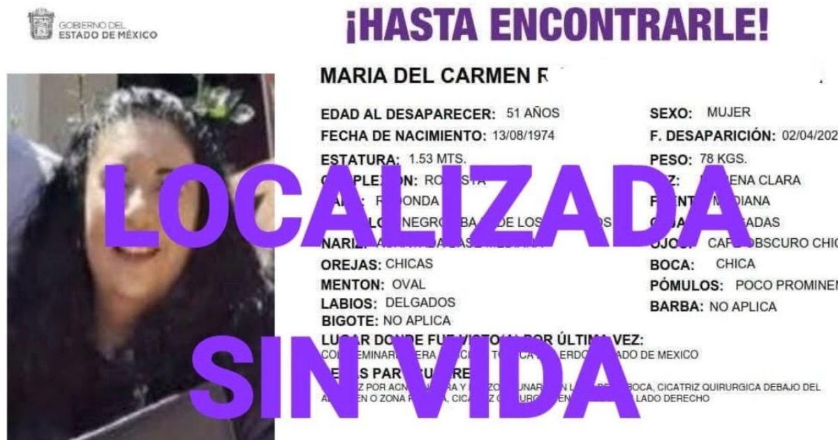 Una mujer identificada como María del Carmen, de 51 años, fue localizada sin vida al interior del domicilio que recientemente había rentado en la colonia El Seminario Cuarta Sección, en Toluca, tras permanecer desaparecida durante tres días.
