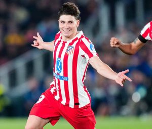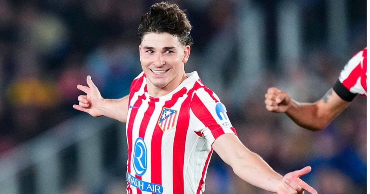 En la falta subsiguiente, Julián Alvarez anotó el 1-0 con un disparo preciso por encima de la barrera que superó a Joan García justo antes del descanso.
