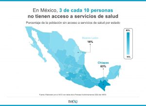 Ciudad de México.– La falta de acceso a servicios de salud en México sigue siendo un problema, en pleno 2026, 3 de cada 10 personas en el país no cuentan con atención médica, de acuerdo con datos difundidos por el IMCO (Instituto Mexicano para la Competitividad) elaborados a partir de la medición de pobreza multidimensional 2024 del INEGI.