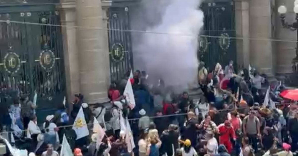 Dentro del recinto se vivieron momentos de caos. Elementos policiacos utilizaron polvo de extintores para contener el avance de los inconformes, lo que derivó en empujones, gritos y escenas de confrontación directa. Esta situación obligó a decretar un receso indefinido en la sesión.