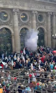 Desde temprano, los manifestantes se concentraron en las inmediaciones con una exigencia clara: soluciones inmediatas en materia de vivienda. La protesta escaló cuando un grupo intentó ingresar por la fuerza, rompiendo vidrios y enfrentándose con personal de seguridad.
