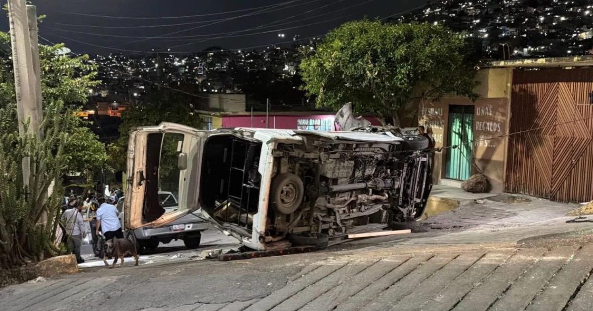 Una volcadura registrada la noche del martes en el municipio de Tlalnepantla dejó al menos cuatro personas lesionadas. El accidente ocurrió en la colonia Dr. Jorge Jiménez Cantú, cuando una unidad de transporte público de la ruta Ecatepec–Santa Clara perdió el control y terminó volcada sobre la vialidad. La combi presentó daños considerables tras el impacto.