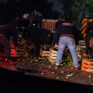 Luego que se diera el percance, automovilistas y residentes de la zona aparecieron para cometer actos de rapiña, quienes, a manos llenas, se llevaban todo lo que podían; el chofer se dio a la fuga dejando la pesada unidad, situación que favoreció la depredación de la mercancía que quedó sobre los guacales de madera y de los que se encontraban regados sobre el asfalto de la arteria.