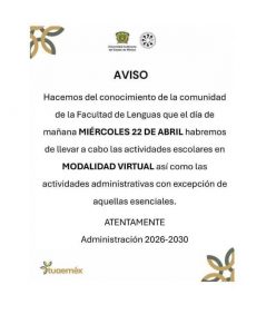 La rectora, Patricia Zarza Delgado, informó que las instalaciones permanecerán bajo vigilancia y que no se retomarán las clases presenciales hasta contar con condiciones seguras. Indicó además que ya se identificó a un estudiante como probable responsable del mensaje detectado en la Facultad de Lenguas, por lo que sus padres fueron citados para comparecer ante las instancias universitarias.
