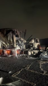 Desafortunadamente, uno de los conductores falleció calcinado, tras quedar atrapado dentro de su cabina que fue alcanzada por las llamas.