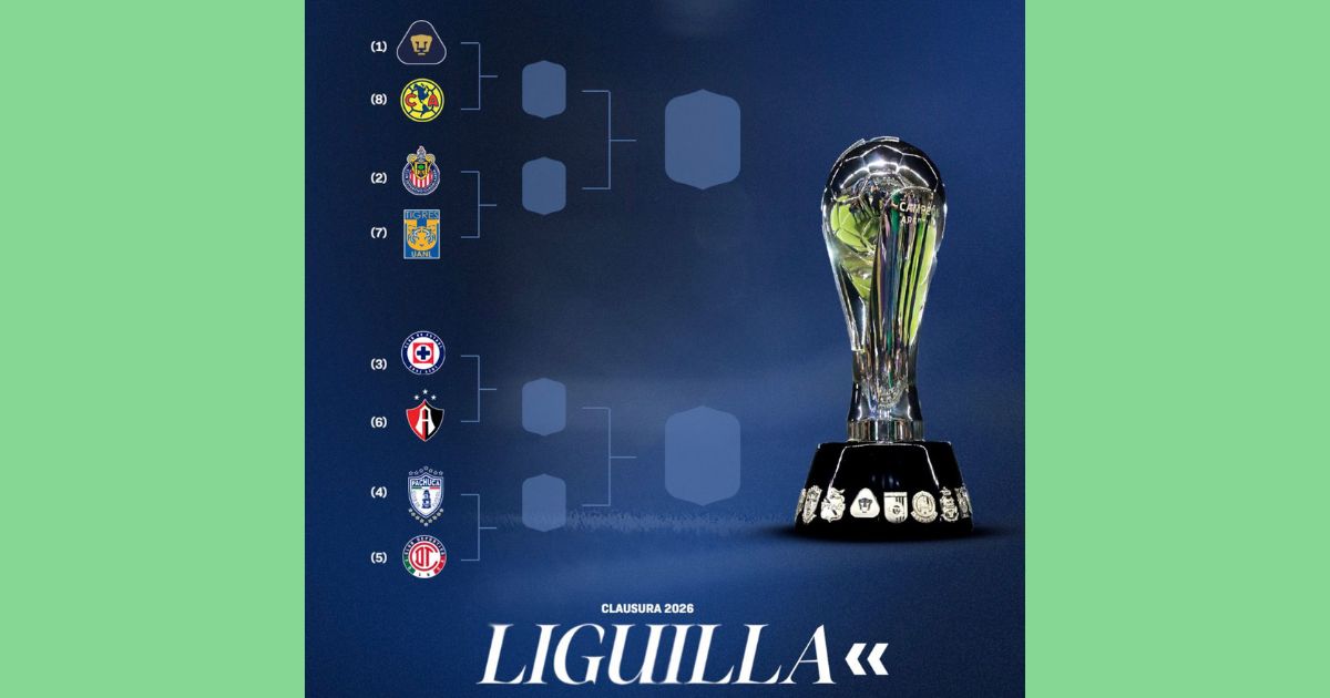 CIUDAD DE MÉXICO.- La fase regular del Clausura 2026 concluyó y el panorama para la Liguilla quedó definido con Pumas a la cabeza tras un torneo de récord institucional. El equipo universitario encabeza unos cuartos de final de alta intensidad contra América, a los que se suma Chivas vs Tigres, Cruz Azul vs. Atlas y Pachuca vs Toluca.