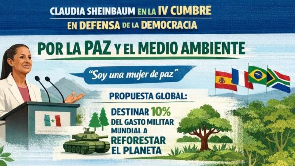 Propone Sheinbaum paz y reforestación mundial en su participación en la IV Cumbre en Defensa de la Democracia