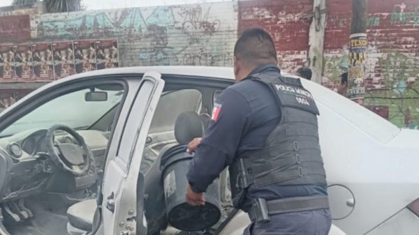 Salvan a conductor de auto en llamas, por poquito no la cuenta